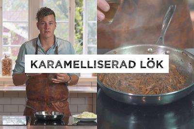 Så lyckas du med löken! Karamelliserad lök är ett härligt tillbehör som passar jättebra att servera till exempelvis hamburgare och grillat eller, som i receptet ovan, på en vit pizza. I Välstekt med Scanpan visar Thomas Sjögren hur du lyckas med karamelliseringen och får till en söt, djup och fantastiskt god löksmak. Källa: https://www.sundqvist.se