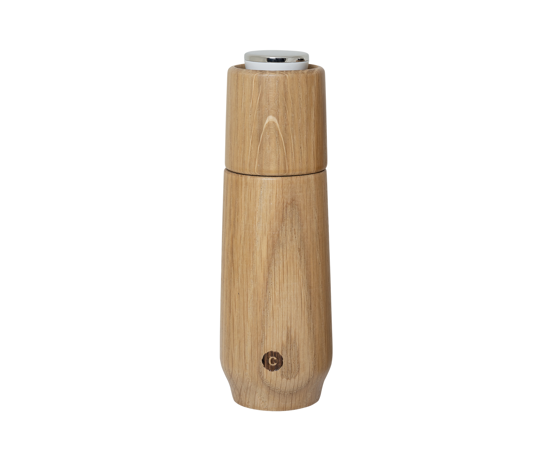Champagnekvarnen är gjord av FSC® (C132484) certifierat ek och justeringshjulet är spegelpolerat stål. En diskret vit och svart ring indikerar om den innehåller salt eller peppar.
