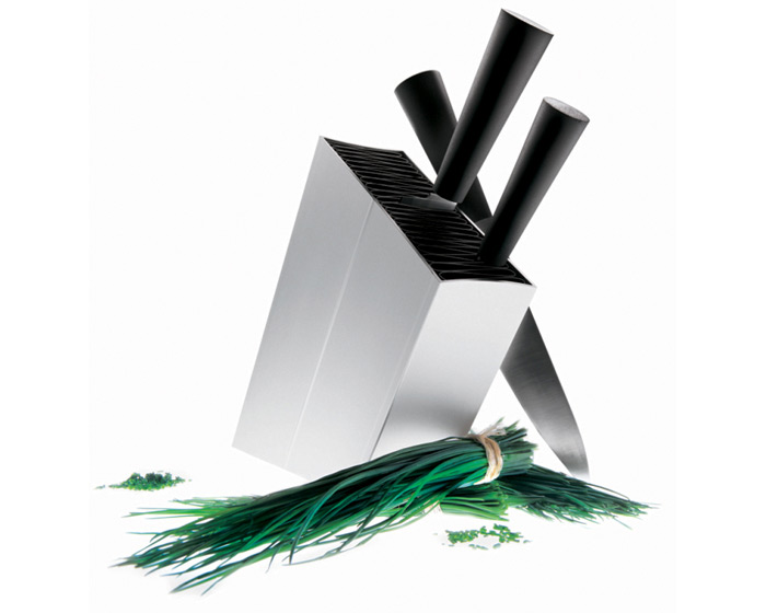 Knivblocket från Eva Solo har en flexibel veckad insats av plast som håller reda på knivar och andra redskap.