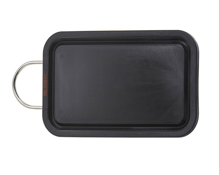 Globals snygga och stilrena plastskärbrädor finns i två storlekar. De är tillverkade i livsmedelsklassad plast vilket gör skärbrädorna skonsamma mot knivarnas egg och lätta att hålla rena. Skärbrädorna tar inte heller åt sig någon lukt.