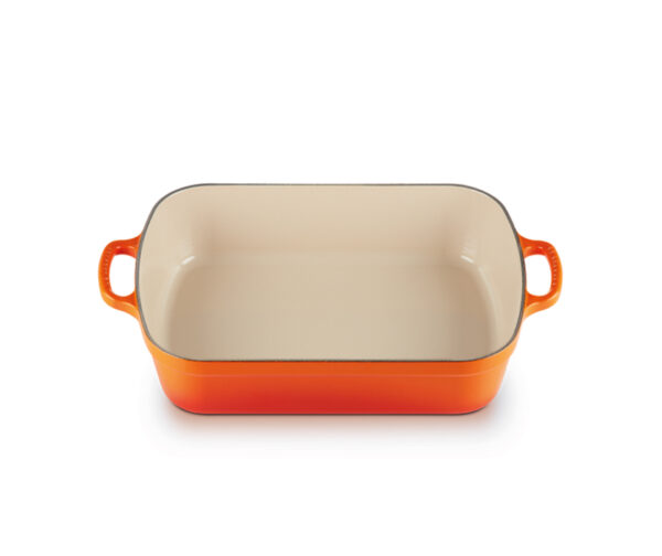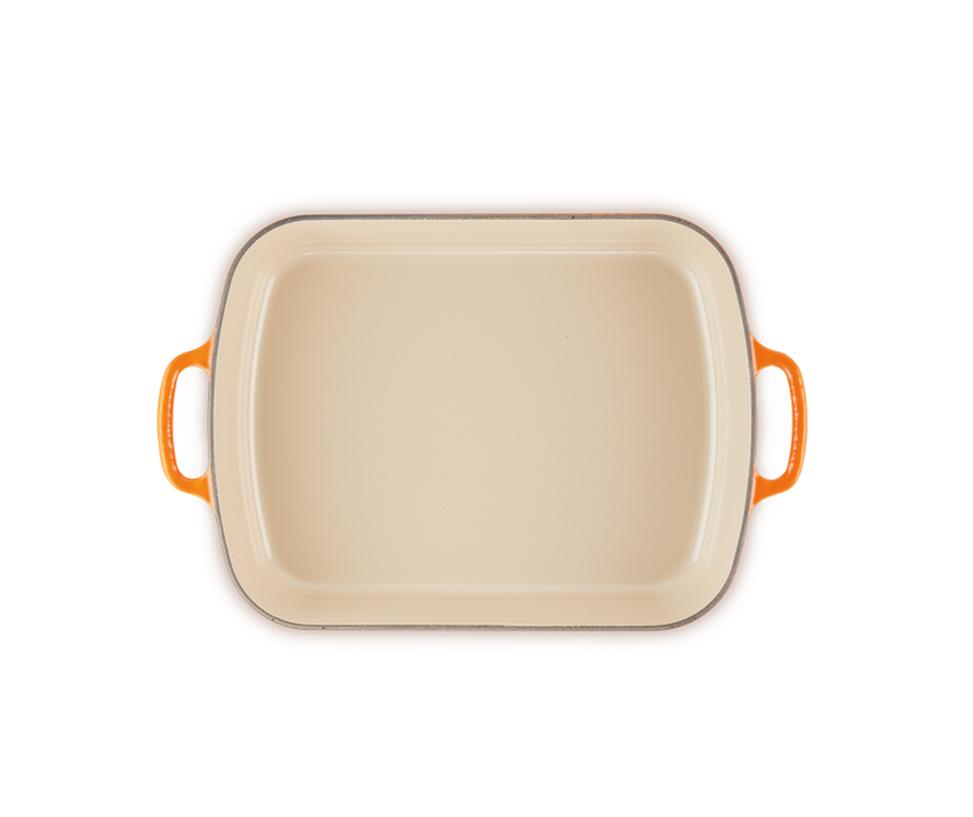 Få saker är lika tillfredsställande som att slänga några ingredienser i ugnen och sedan iaktta dess förvandling. Denna mångsidiga ugnsform i emaljerat gjutjärn hjälper dig att tillaga rejäla måltider. Den rektangulära formen är perfekt för alla slags rätter, från kött och potatis till hemlagad lasagne och smulpaj.