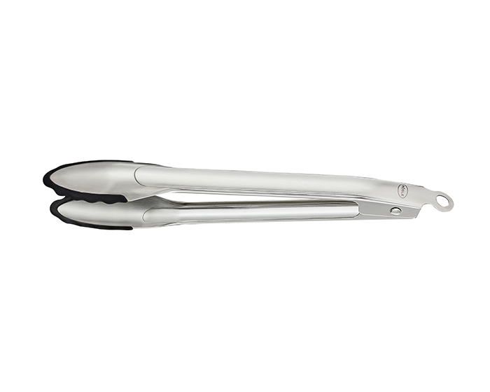 RÖSLE kökstång med patenterad öppningsmekanism som gör det möjligt att öppna och låsa tången med endast en hand. Silikonbeläggningen förhindrar repor i kokkärl med ytbeläggning eller av rostfritt stål.